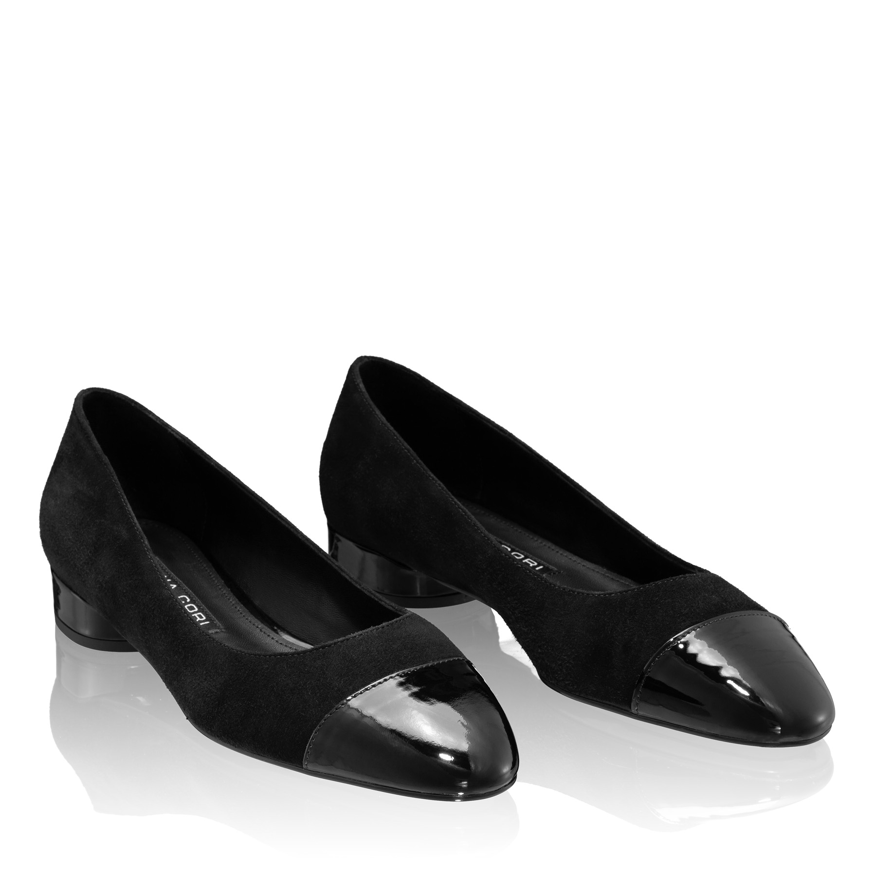 Елегантни дамски обувки от велурена кожа с лакиран връх - с класически дизайн и дискретен ток от 20 мм, този модел обувки представлява перфектния баланс между комфорт, женственост и изтънченост, подходящ за пролетно-летни облекла.
